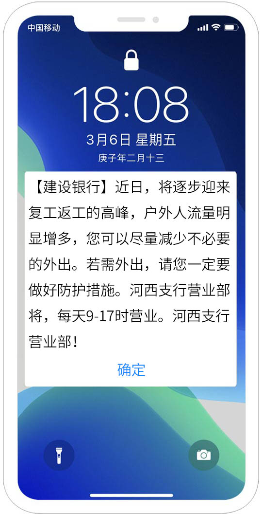 是指用戶在收到閃信群發內容后,無需打開,短信內容直接顯示在用戶手機屏幕上,用戶如果沒有點擊閱讀,則閃信內容一直有顯示,用戶必須點擊才能關閉,真正實現了高閱讀率、高到達率!提升了用戶對產品的轉化率!